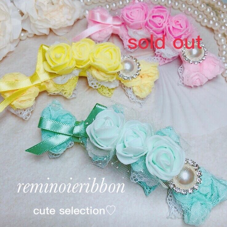 犬リボン♡カチューシャ風トリプル薔薇リボン