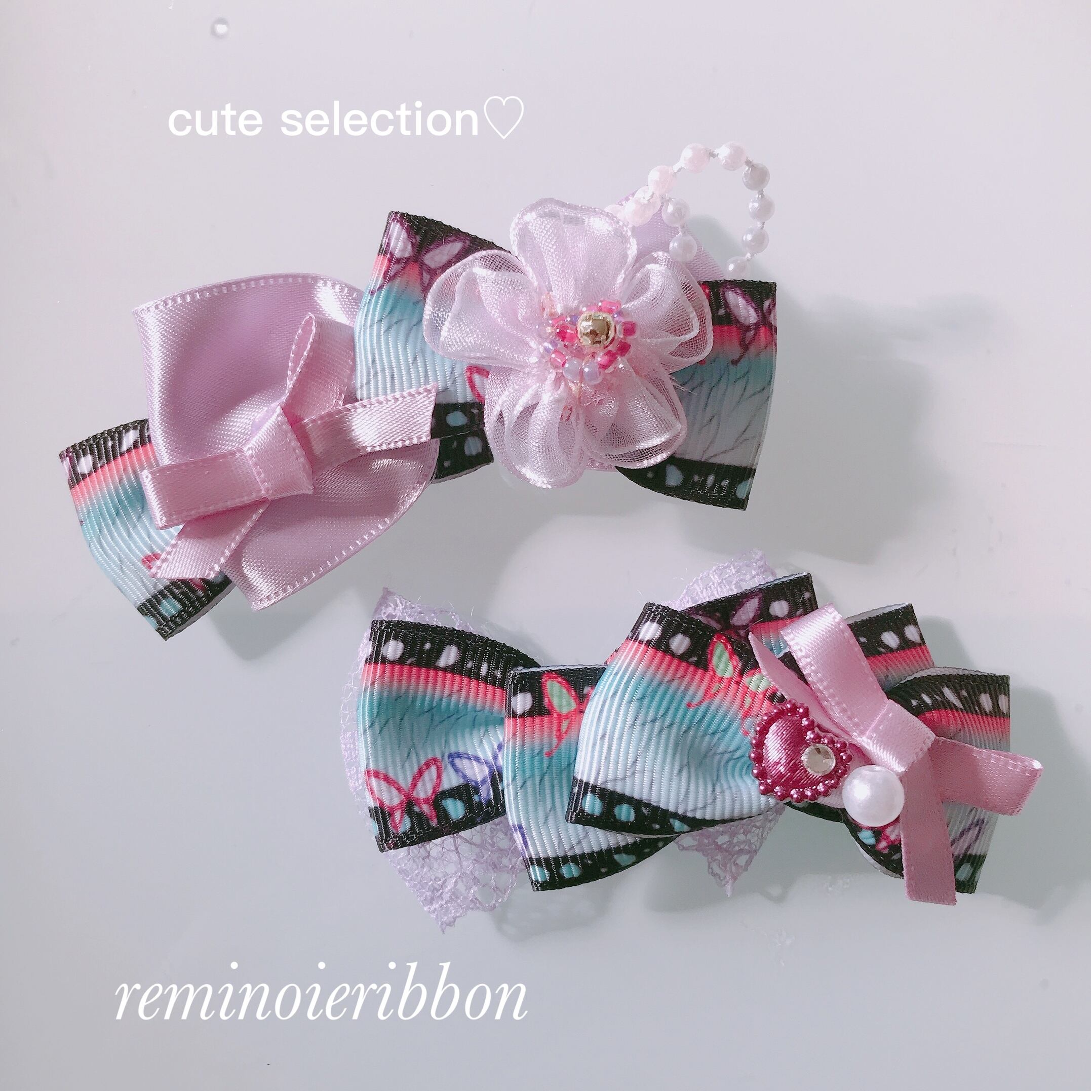 和柄の胡蝶トリプルおリボン⋈♡*。゚