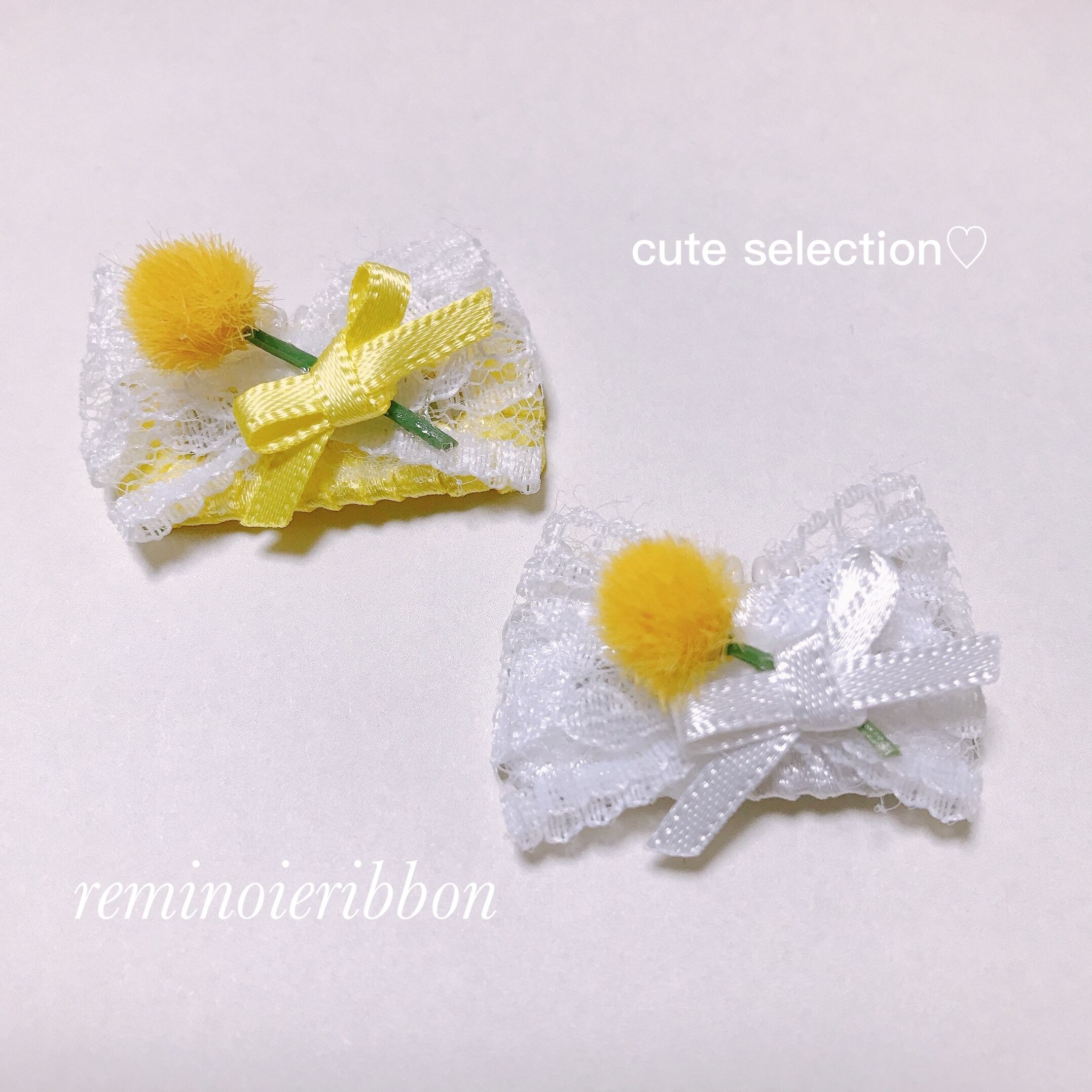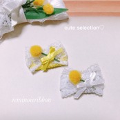 春カラーにミモザとレースをあしらった可愛いコームパッチンです♡