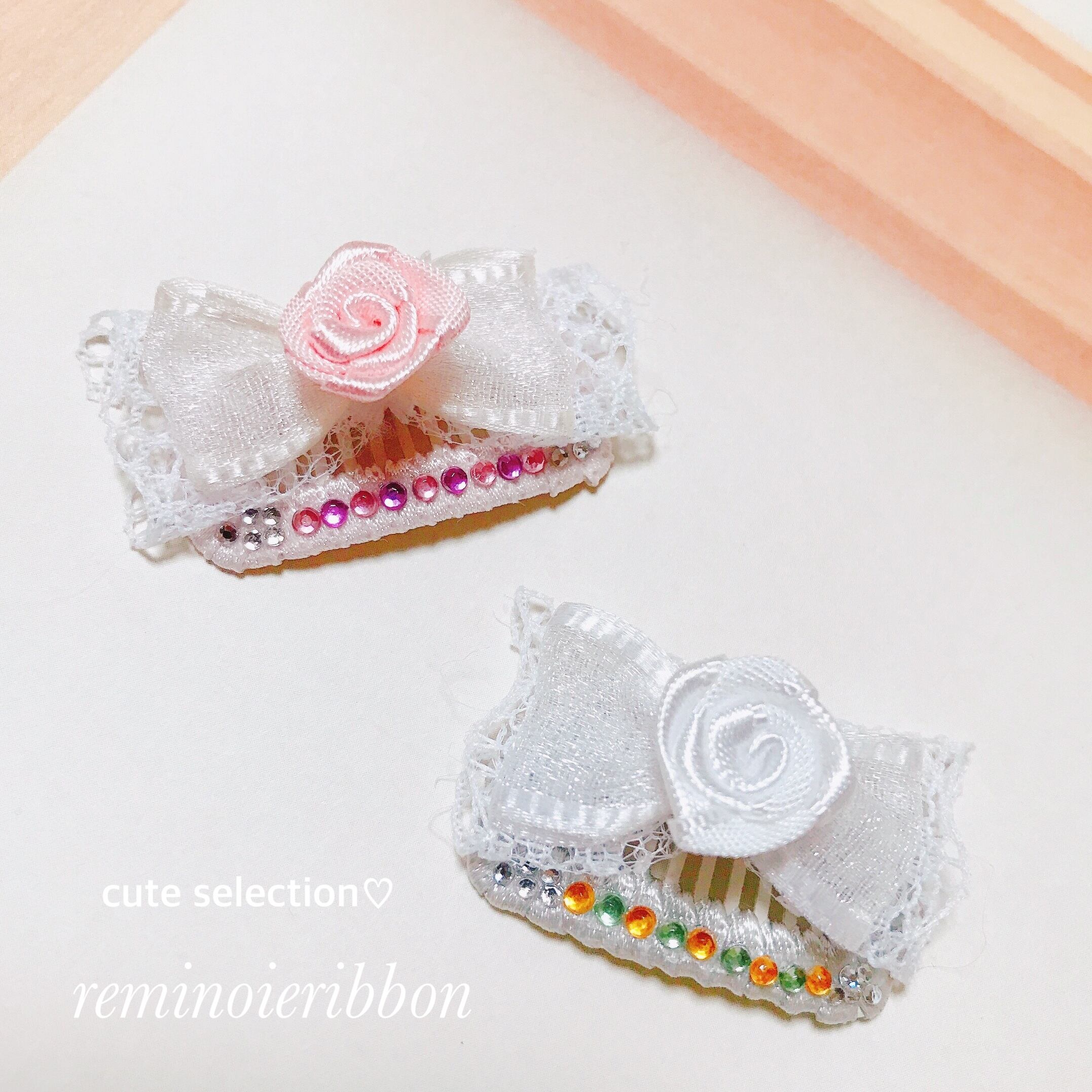 薔薇とレースのコラボした可愛いコームパッチンです♡