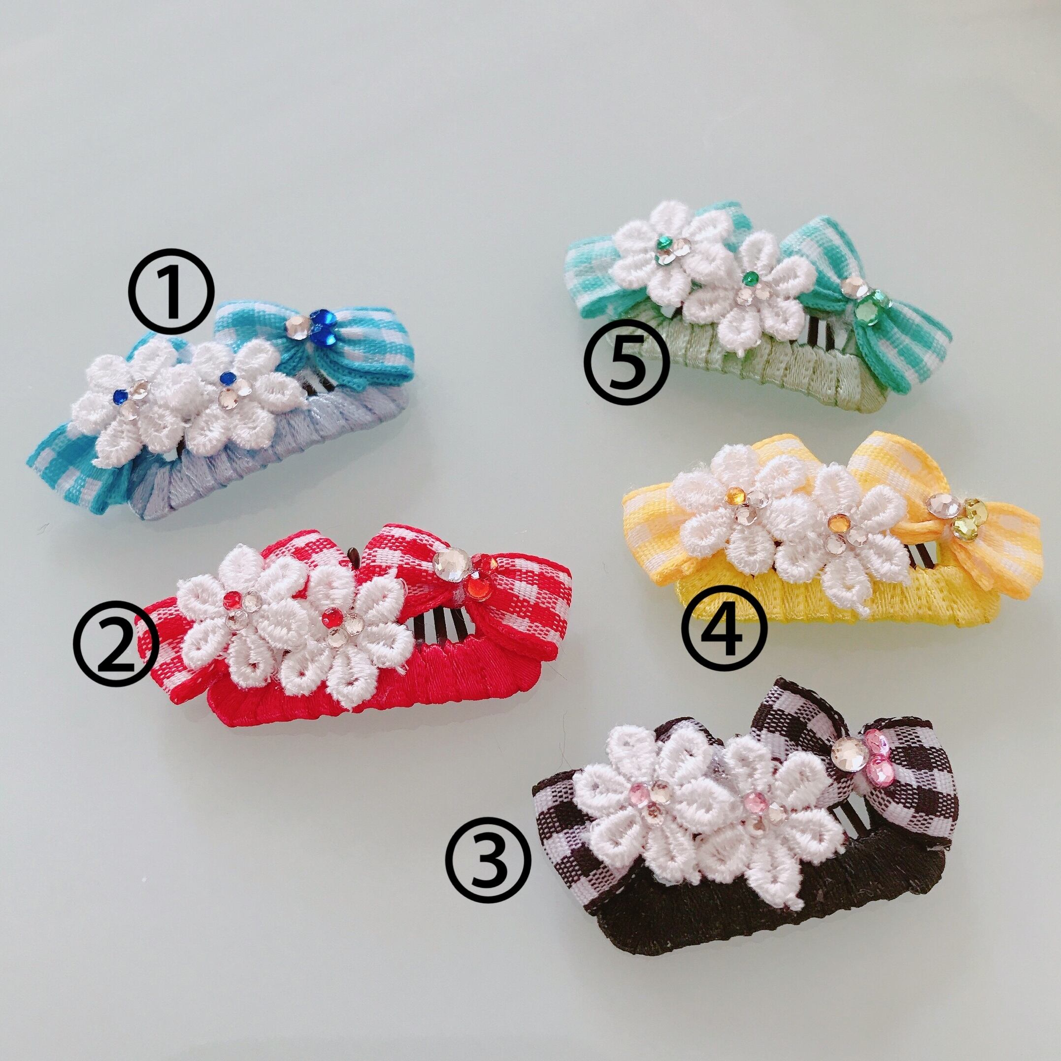ギンガムチェックリボンを使ったお花のコーム♪
