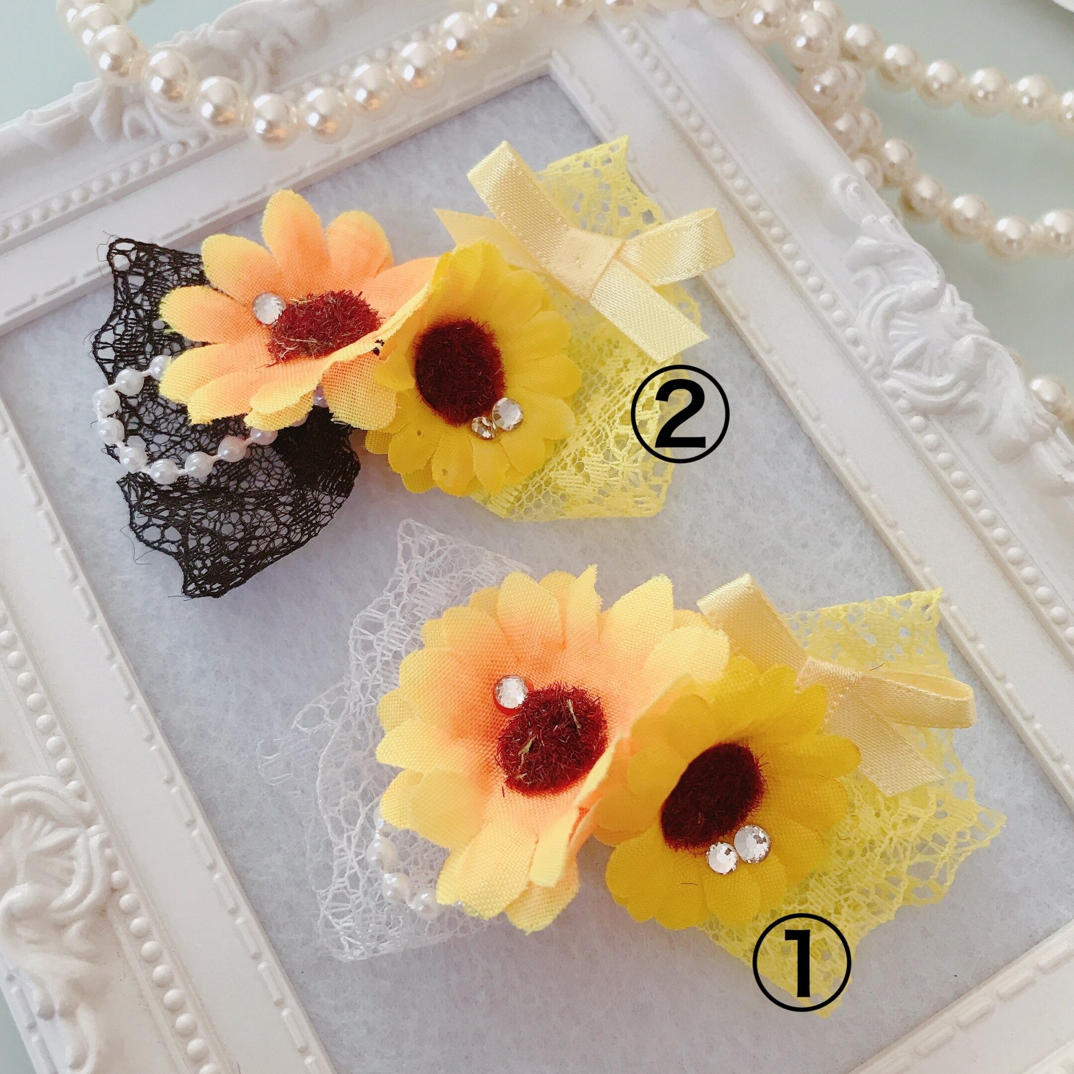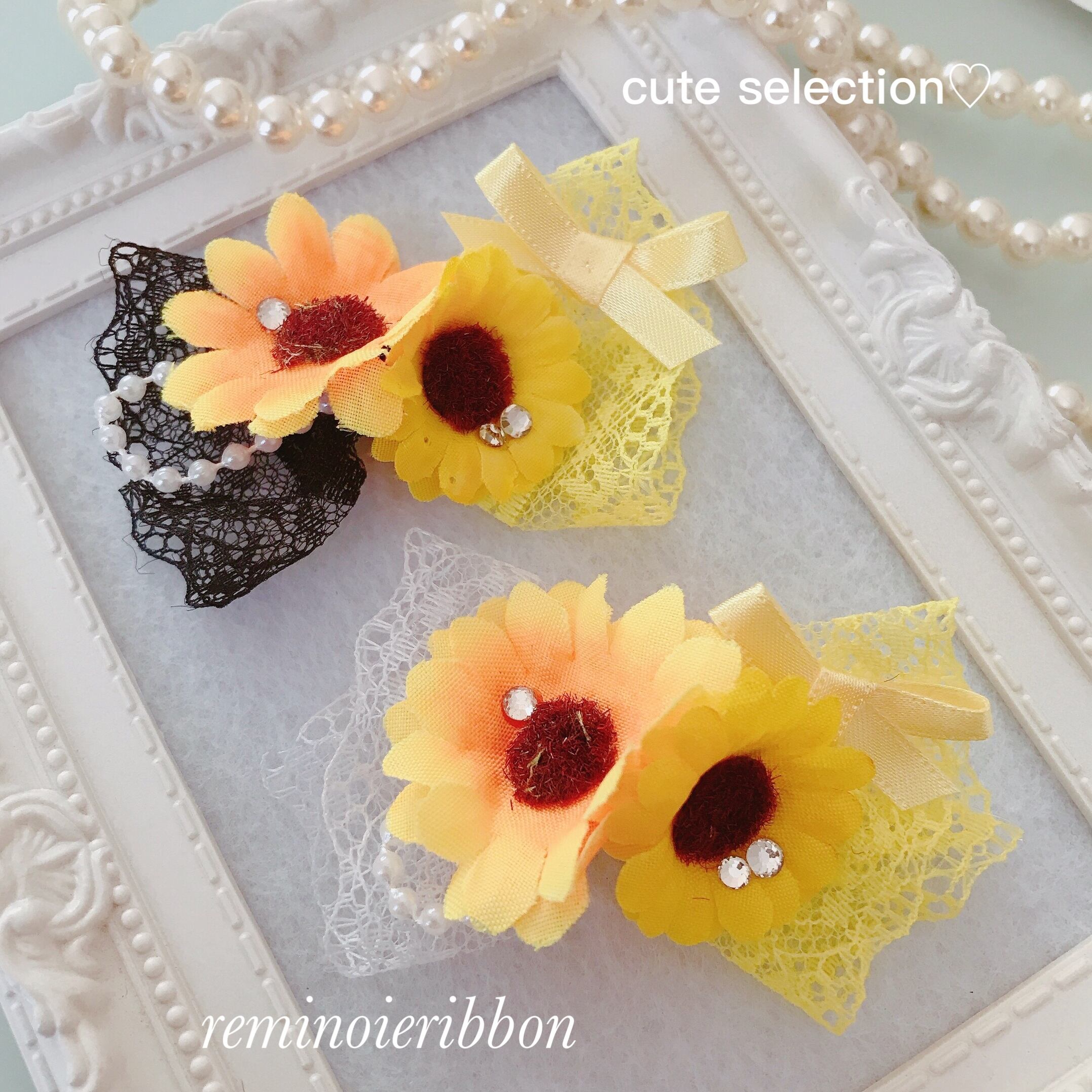 犬リボン♡ツインレースひまわりリボン