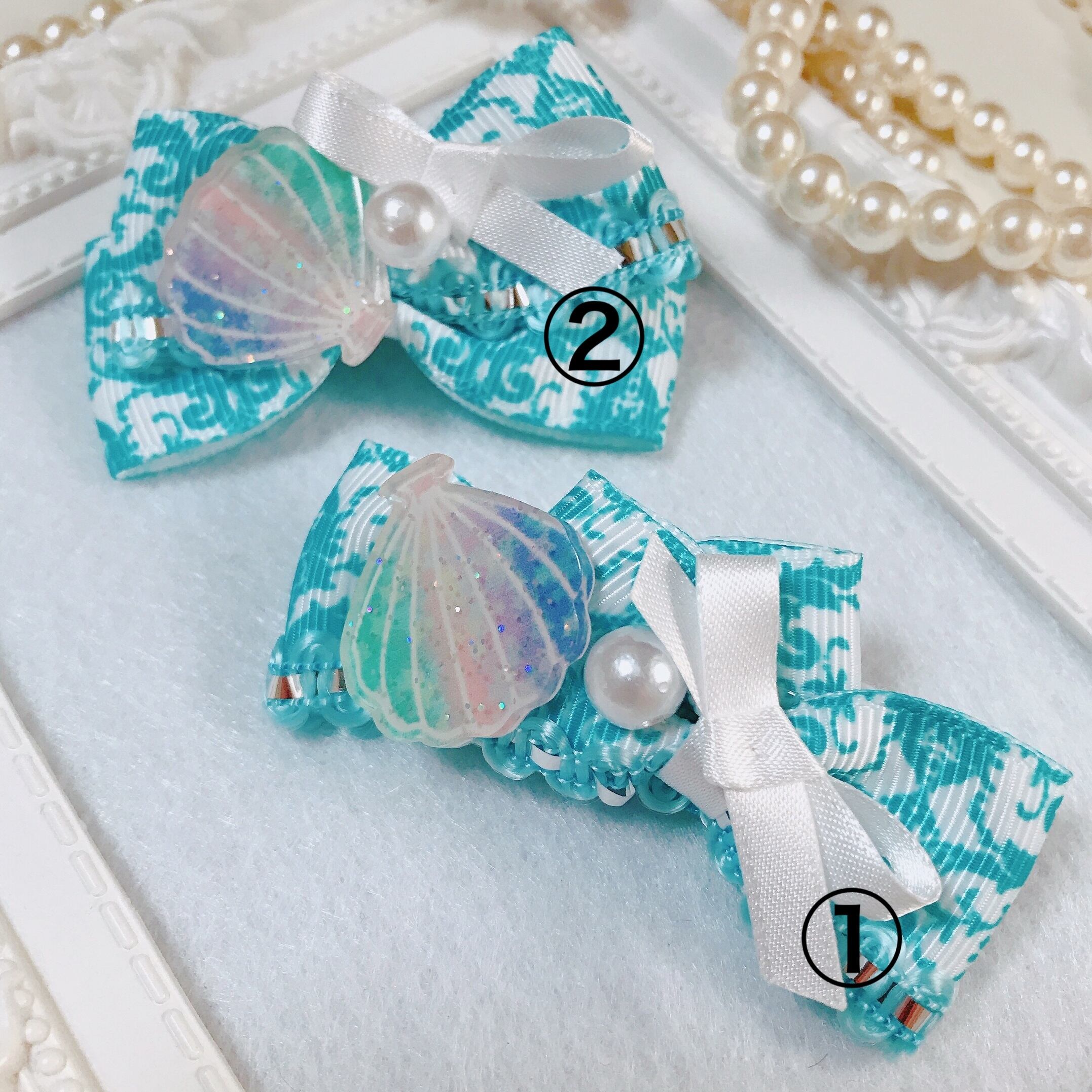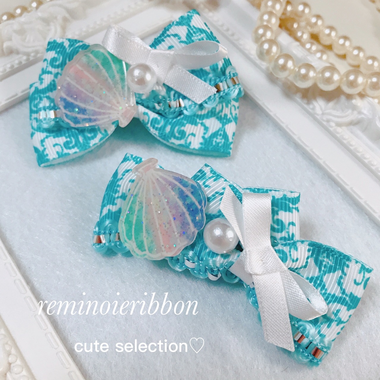 綺麗な色のシェルが夏らしいリボンです⋈♡*。゚