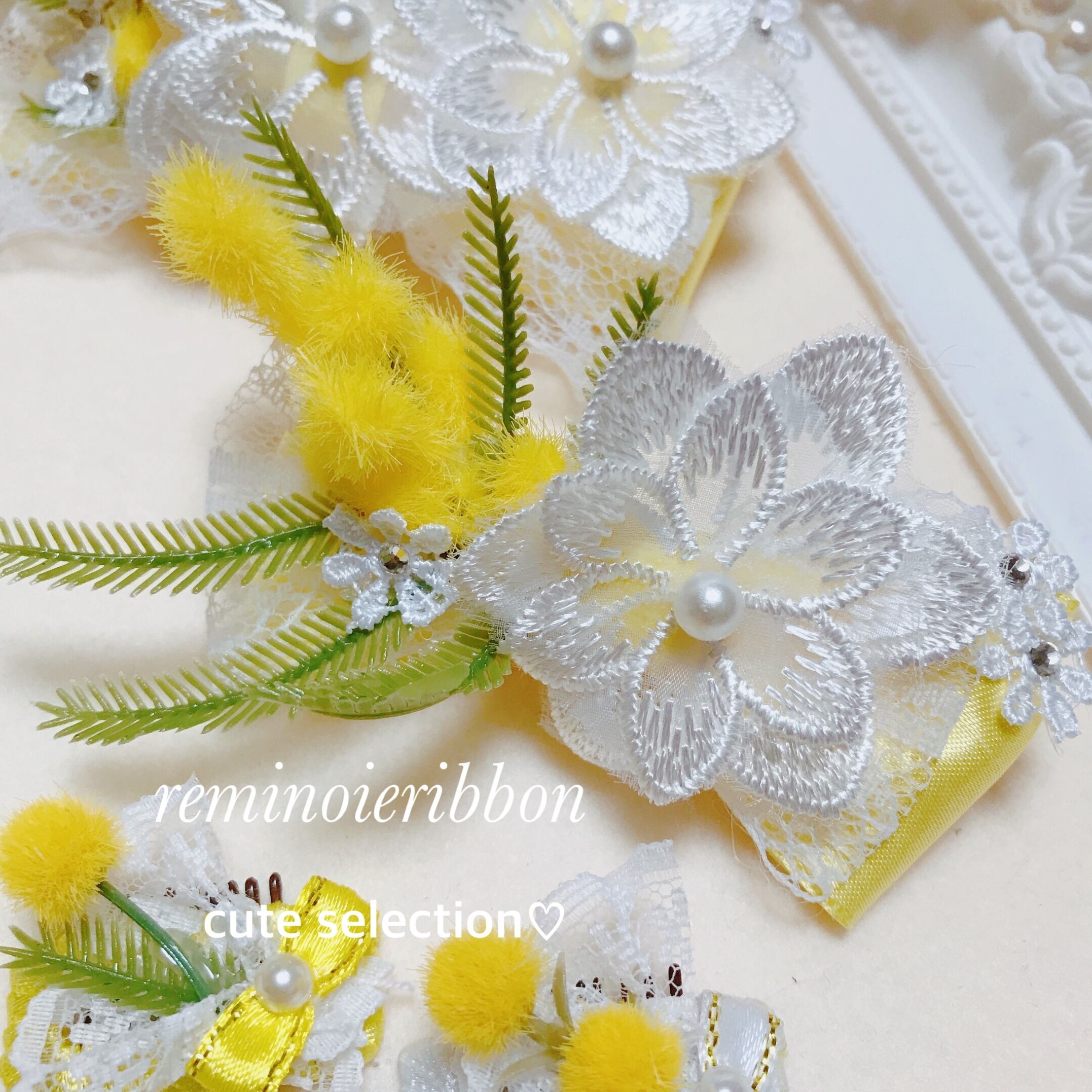 ミモザを使ったレギュラーサイズのリボン⋈♡*。゚
